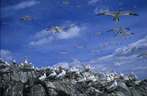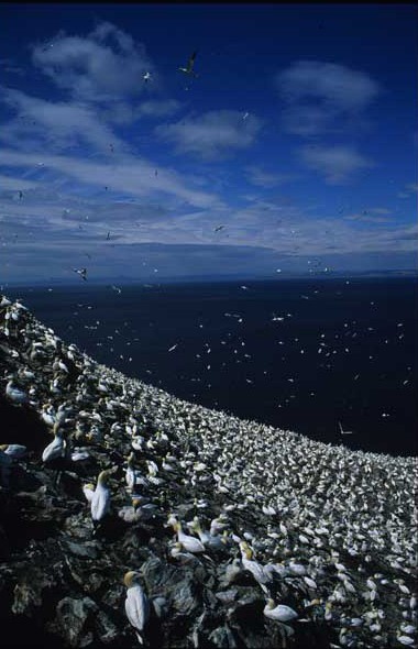 E' solo una scheggia di roccia nelle gelide e scure acque del Golfo di Edimburgo, in Gran Bretagna, eppure visitarla lascia un segno indelebile nella memoria. L'Isola di Bass Rock ospita una delle più grandi colonie di sule del mondo. La concentrazione è tale che da lontano sembra di scorgere una montagna innevata. Secondo i censimenti sono circa 50mila le coppie che ogni anno vi giungono per nidificare. Un grandioso spettacolo della natura.